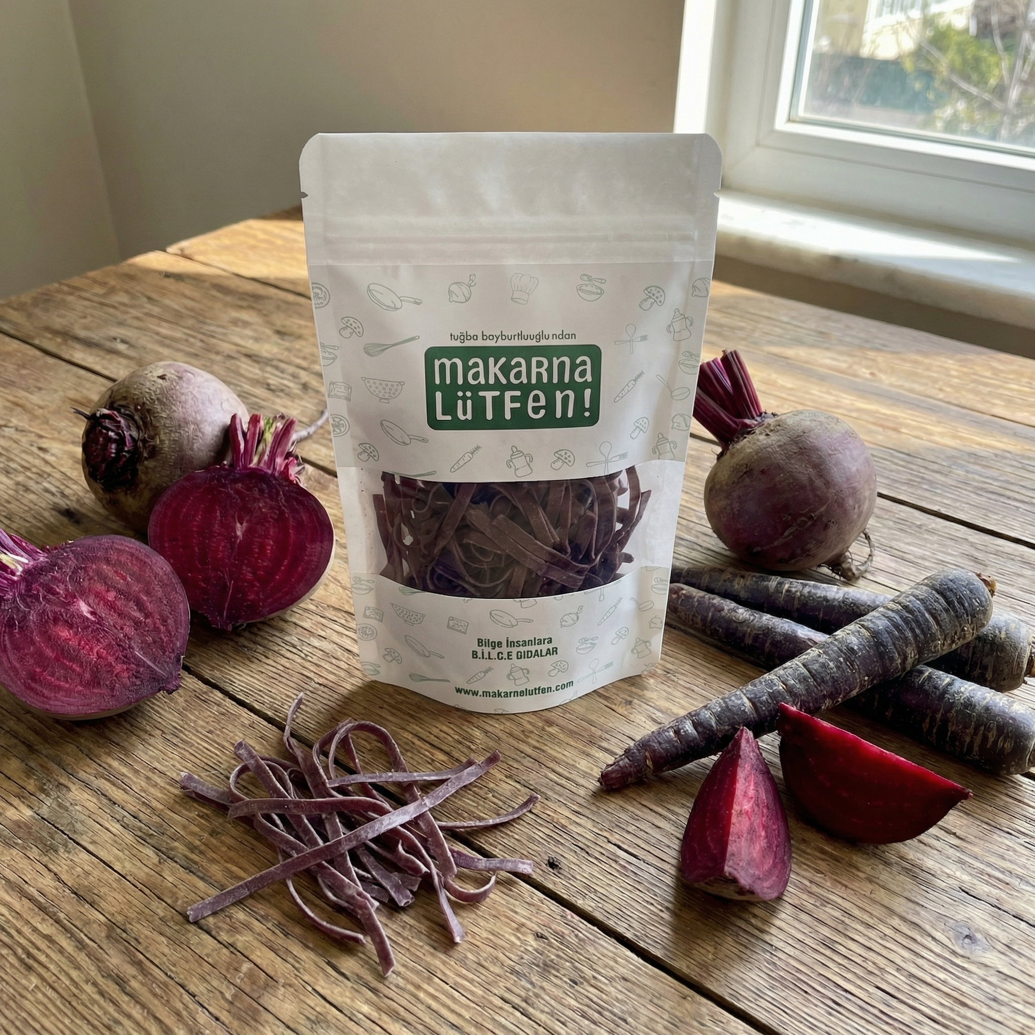 Bebekler İçin Doğal Mor Renkli Pancarlı Erişte (8+ Ay, 200 gr)