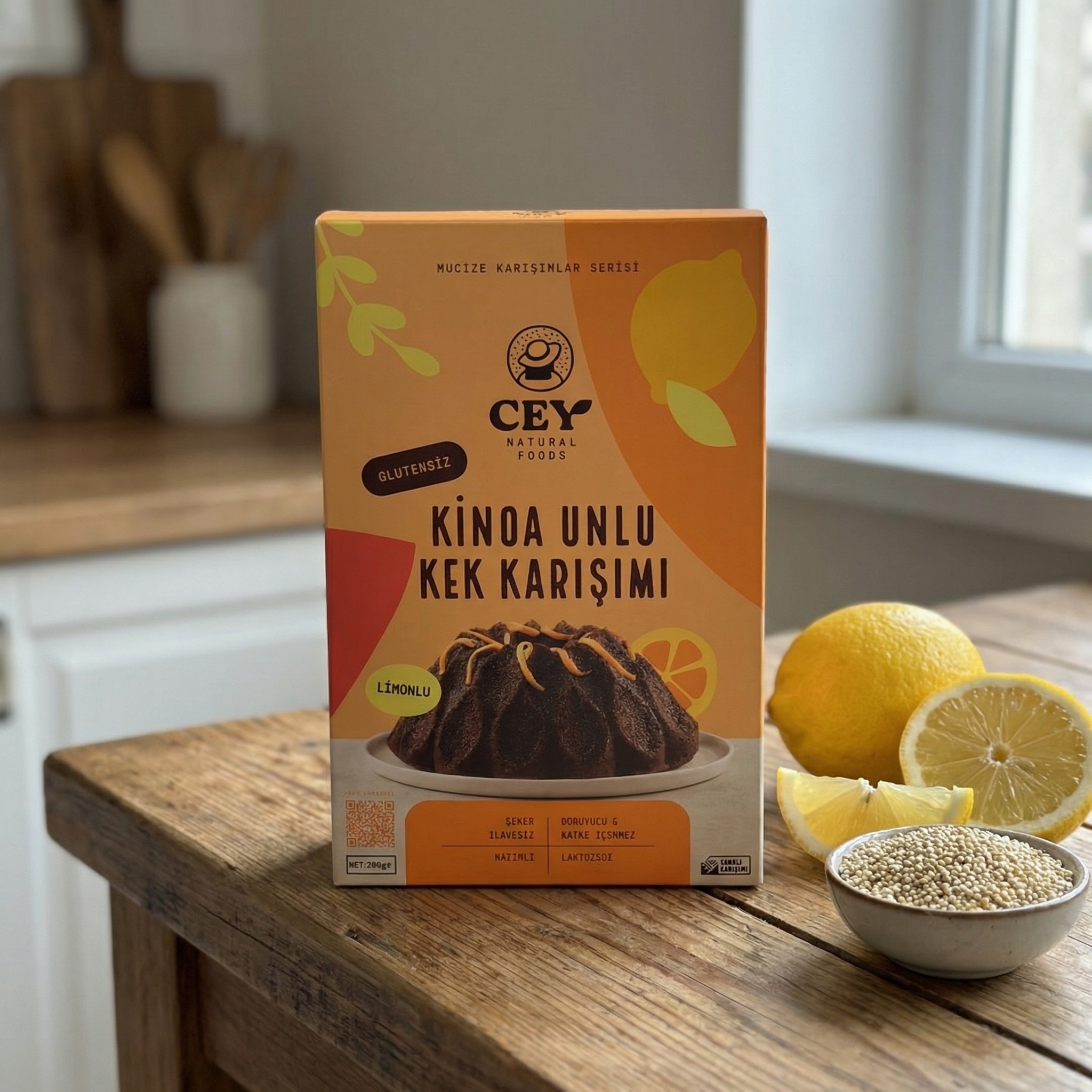 Cey Natural Limonlu Kinoa Kek Karışımı - Glutensiz ve Şekersiz Lezzet Bombası (265 g)