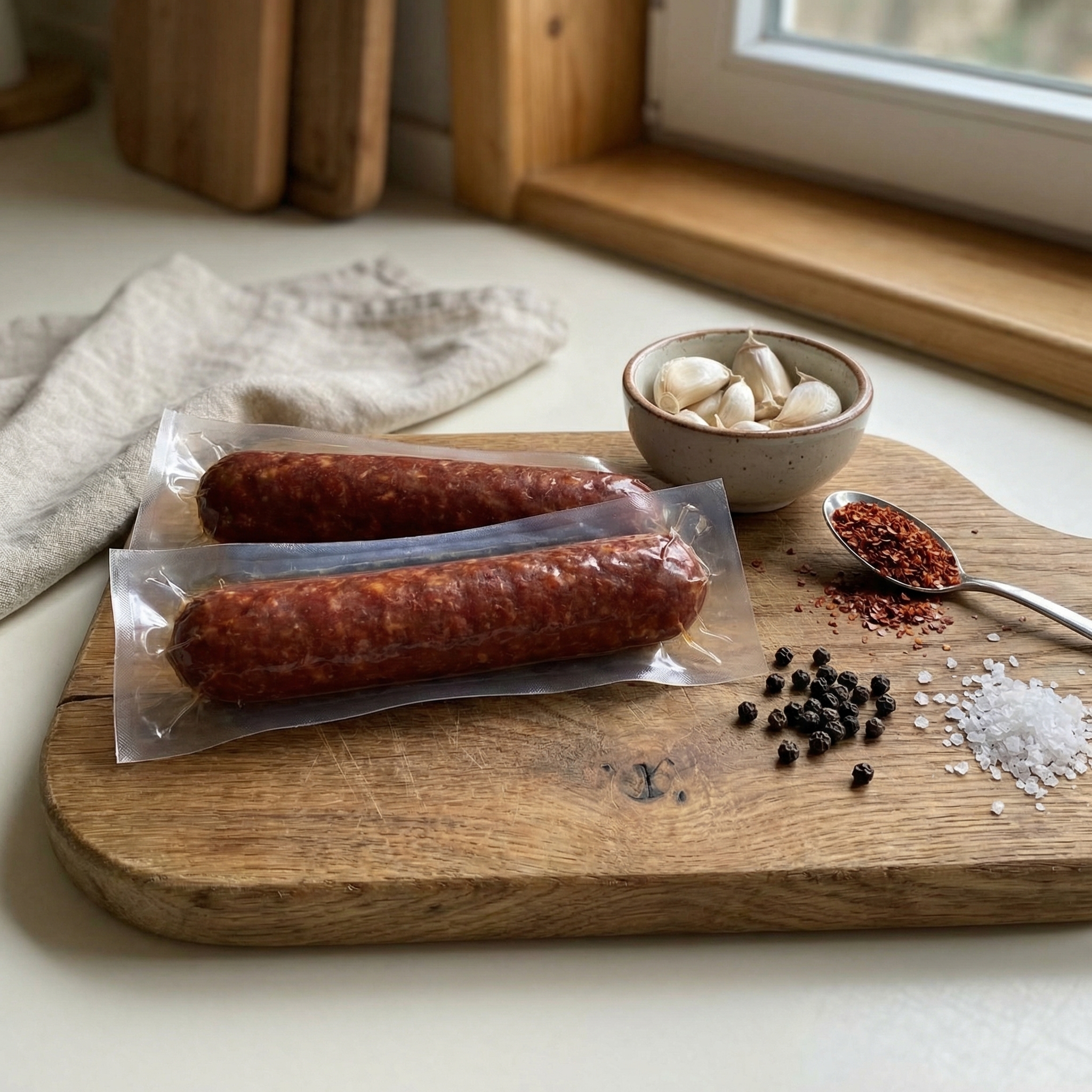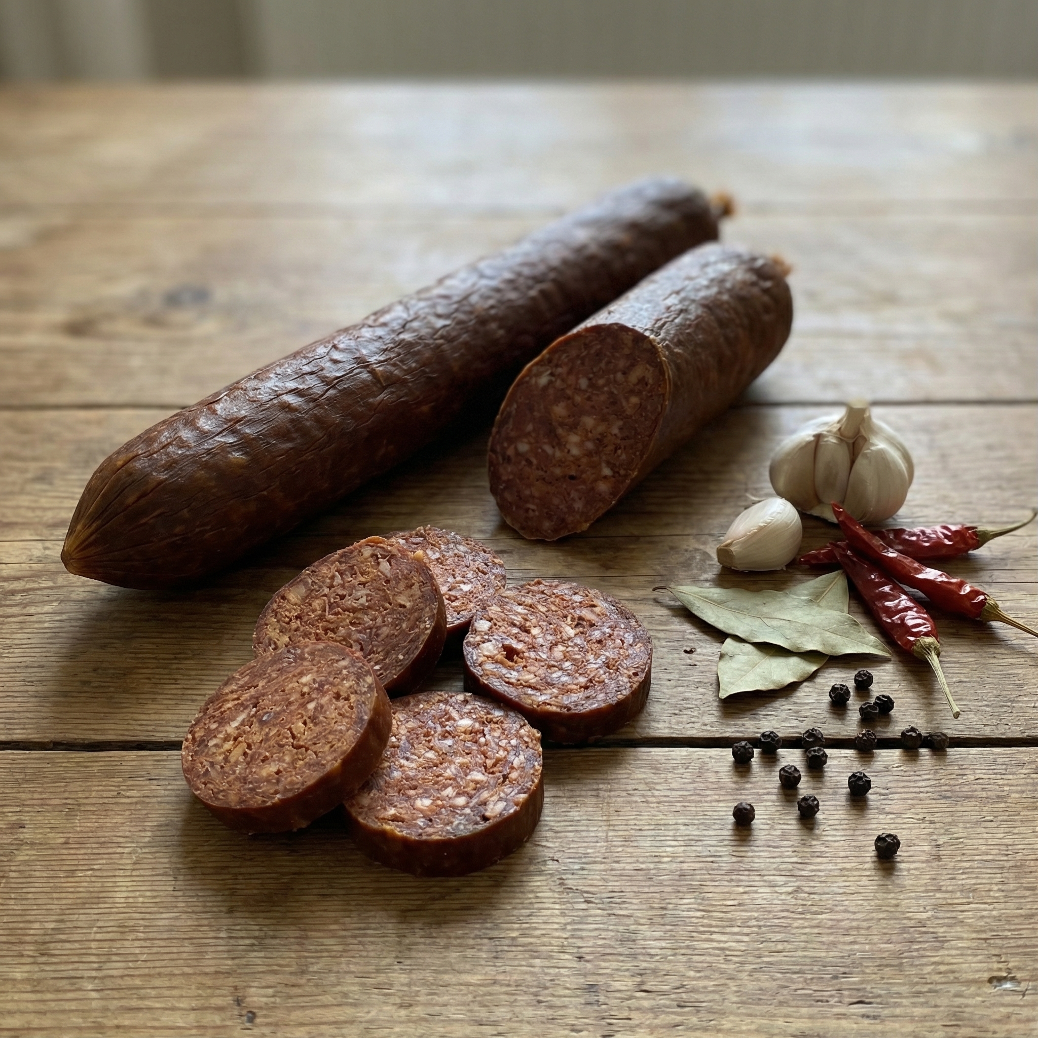 Bu özel sucuk, yalnızca en kaliteli et ve seçkin baharatların bir araya gelmesiyle oluşur. Geleneksel üretim yöntemleri takip edilerek, et kıyma haline getirilir, özenle seçilmiş baharatlarla harmanlanır ve ardından doğal fermantasyon sürecine bırakılır. Bu süreçte et, suyunu kaybederek yoğunlaşır, lezzeti derinleşir ve eşsiz bir aroma kazanır. Sinirsiz, hafif yağlı ve baharatın büyüsüyle içten içe fermente olan bu sucuk, gerçek sucuk lezzetini arayanlar için biçilmiş kaftandır.