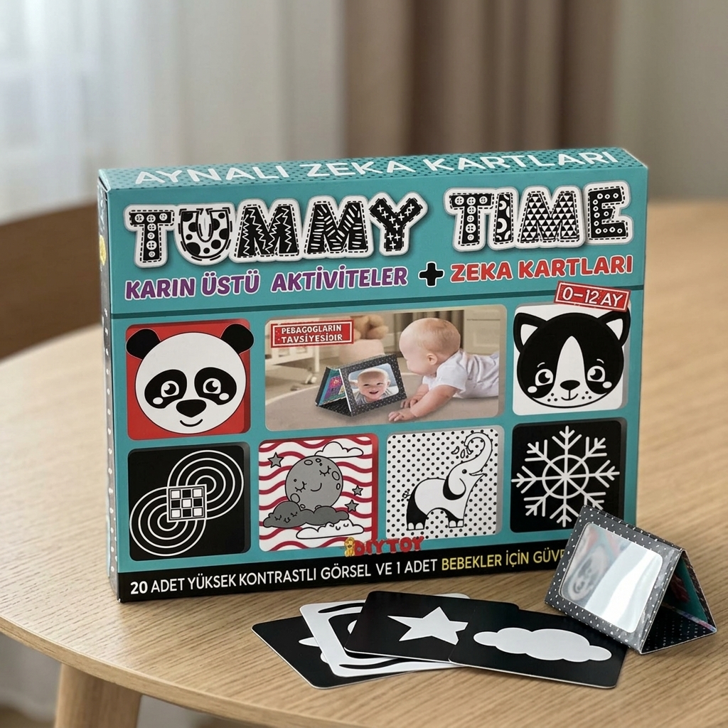 DiyToy Bebekler İçin Güvenli Ayna ve Zeka Kartları ile Tummy Time Aktivite Seti (0-12 Ay)